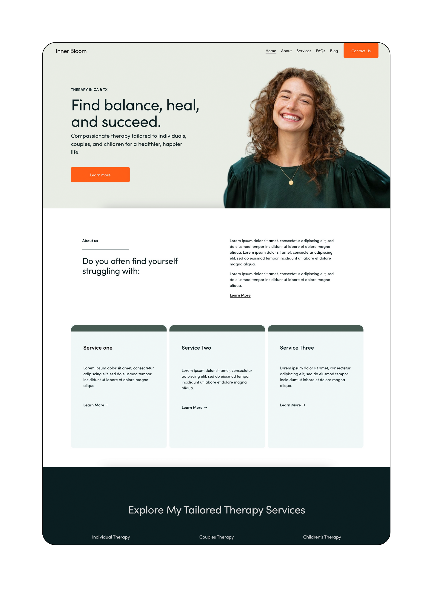 Inner Bloom is perfect for therapists who want a warm, personal touch on their website. It features gentle transitions, spacious sections, and an easy-to-navigate design—great for therapists who focus on personal growth and healing.